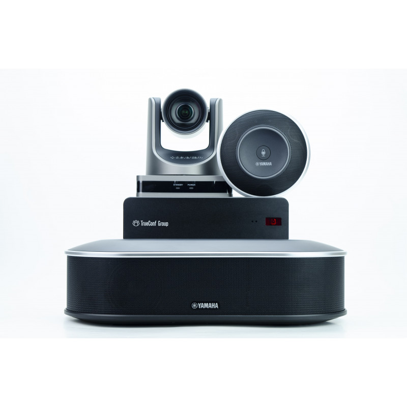 TrueConf Group 202 - аппаратный ВКС-терминал для средних и больших переговорных комнат с поддержкой протоколов SIP/H.323. Оснащён встроенным MCU, а модульная комплектация благодаря своей гибкости позволяет использовать любую AV-периферию, что может обеспечить адаптацию комплекта под любые условия.