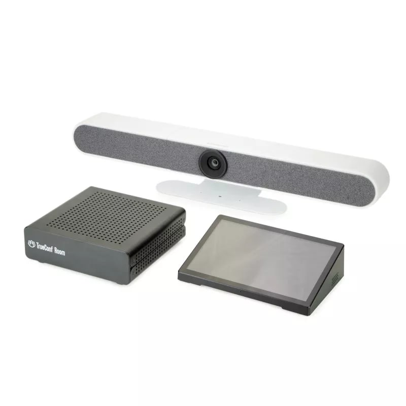 Благодаря данному комплекту вы сможете в кратчайшие сроки оборудовать SMART-переговорную для проведения видеоконференций. Комплект прост в подключении и эксплуатации. Камера передает качественное изображение и не занимает много места. За захват звука отвечает видеобар, со встроенной системой шумоподавления, который прекрасно зарекомендовал себя при проведении конференций. Благодаря малому форм-фактору, отличным графическим возможностям и низкому уровню шума, ВКС кодек позволяет участникам конференции лучше сосредоточиться на обсуждении вопросов. TrueConf Room — передовое программное решение для переговорных комнат. Для управления TrueConf Room используется планшет, все действия по управлению терминалом осуществляются через веб-интерфейс - он полностью моделирует внешний вид клиентского приложения TrueConf, что позволит сразу же приступить к его использованию. TrueConf Room может использоваться, как с выделенным сервером видеосвязи TrueConf Server, так и с облачным сервисом TrueConf Online.