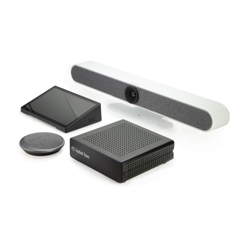 TrueConf Room 325 - ВКС-терминал, готовое решение для оснащения переговорной комнаты на основе TrueConf Room. Комплект состоит из видеобара, мини-ПК, дополнительного микрофона для видеобара, настольного планшета с поддержкой функции PoE (технология одновременной зарядки и передачи информации по одному и тому же кабелю) и предустановленного программного обеспечения TrueConf Room обеспечит качественное и комфортное общение участников конференции.