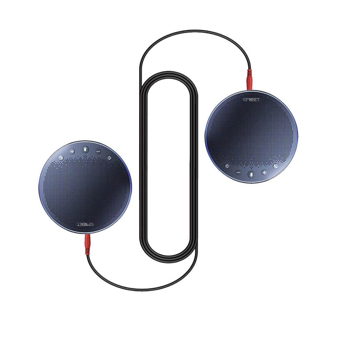 Два спикерфона M 3 могут быть соединены кабелем гирляндной цепи EMEET для проведения совещаний с участием до 20 человек.