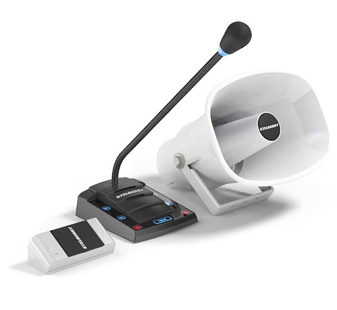 Однако, если требуется система трансляции с несколькими громкоговорителями, распределённая по большой территории или по нескольким помещениям, то потребуется использование модели STELBERRY S-500 с внешним трансляционным усилителем.