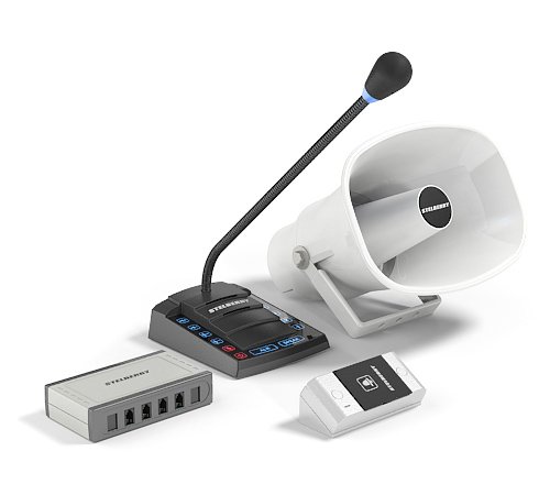 Многоканальное переговорное устройство с системой речевого оповещения STELBERRY S-645 предназначено для подключения только одного рупорного громкоговорителя мощностью 15 Ватт. Если требуется громкое оповещение на большей территории, чем это может дать 15-ти ваттный громкоговоритель, или если требуется использовать несколько рупоров, то вместо переговорного устройства STELBERRY S-645, следует использовать STELBERRY S-640 с внешним трансляционным усилителем.
