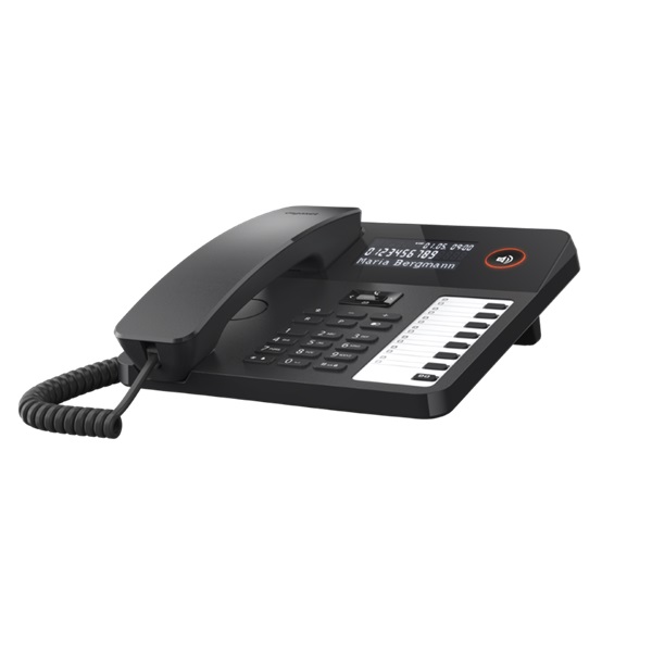 Разумеется, телефон поддерживает функцию CLIP, отображения номера звонящего и имени. Список вызовов записывает до 50 пропущенных и принятых вызовов. Он доступен в черном и белом цветах. Телефон питается от прилагаемого адаптера 230 В.
