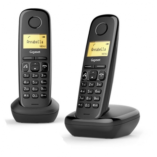 Gigaset A270 DUO чёрный. Бюджетный телефон стандарта DECT черного цвета с двумя трубками в комплекте, обладающий необходимым набором базовых функций и выполненный с немецким качеством. Основные характеристики: громкая связь, определитель номера, телефонная книга, 10 мелодий звонка, часы, будильник, ускоренный набор, расширение до 4 трубок, дисплей 1.5" с подсветкой .