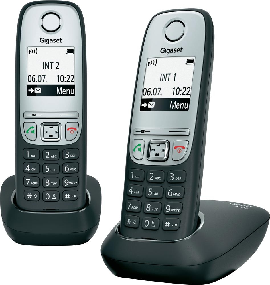 Очень важно, чтобы пользоваться телефоном было максимально легко и просто. Встречайте новый Gigaset A415 Duo : современный, чрезвычайно удобный беспроводной телефон. Вы оцените удобную навигацию, большой высококонтрастный чёрно-белый дисплей, а также адресную книгу на 100 контактов. Наслаждайтесь великолепным качеством звука, проводя время за долгими приятными беседами по телефону.