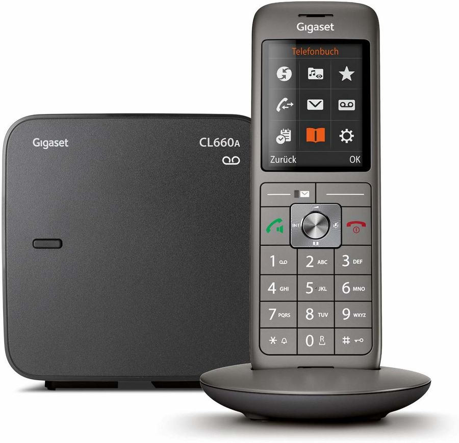 Красивый и практичный радиотелефон Gigaset CL660A , сочетающий идеальный дизайн и первоклассные характеристики. Основные функции: поддержка CAT iq 2.0, автоответчик, запись разговора, разъем micro-USB, цветной дисплей, определитель номера, огромная телефонная книга, громкая связь, подсветка клавиатуры, автодозвон, подключение к компьютеру, возможность настенной установки базового блока, радио-няня, ночной режим, черный список, часы, будильник, календарь, "детский вызов", возможность загрузки мелодий вызова и картинок, поддержка QuickSync, перенос контактов через DECT с трубки на трубку, таймер, заставки, крупный шрифт, разъем для гарнитуры