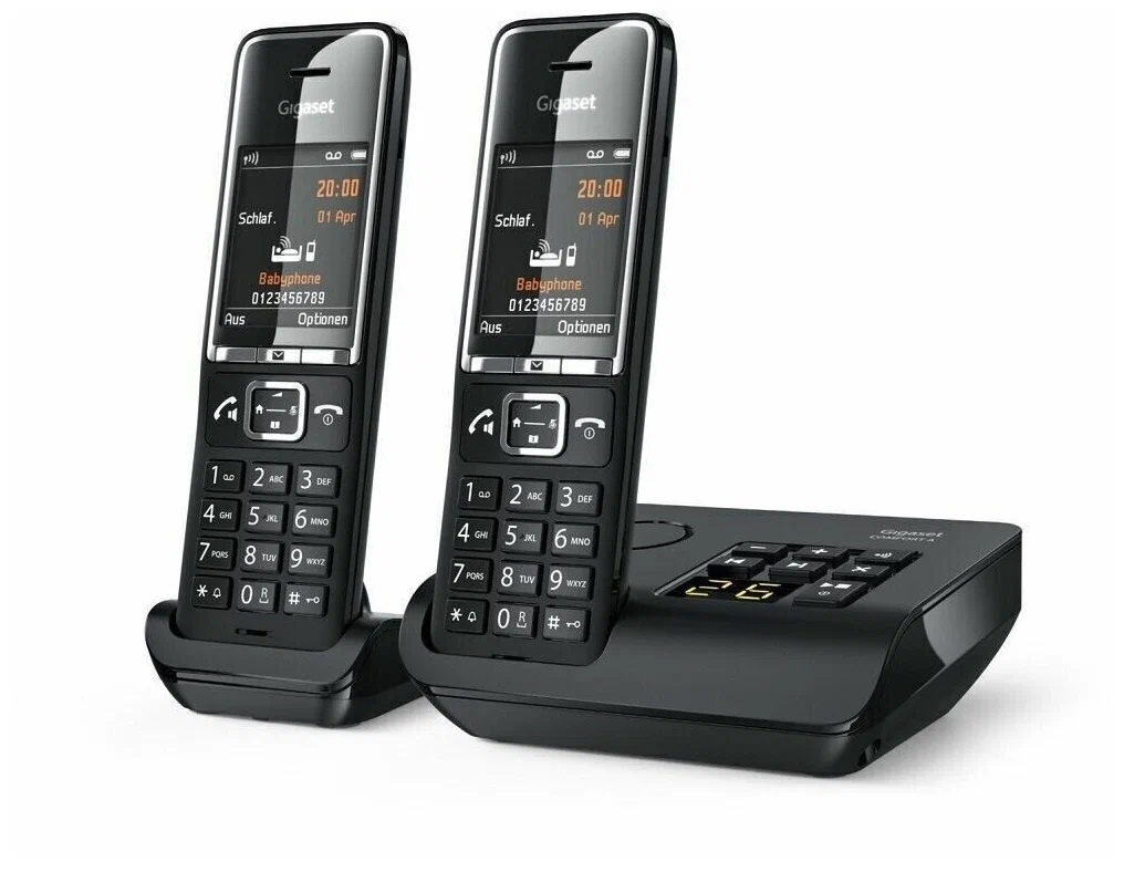 Gigaset Comfort 550A DUO RUS - новый стандарт комфортного общения дома и в офисе. Особенности: автоответчик, две трубки в комплекте. Основные функции: поддержка CAT iq 2.0 и 2.1, цветной дисплей, определитель номера, огромная телефонная книга, громкая связь, подсветка клавиатуры, радио-няня, ночной режим, черный список, часы, будильник, календарь, "детский вызов", перенос контактов через DECT, таймер, заставки, крупный шрифт, разъем для гарнитуры.