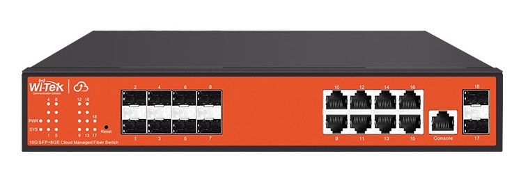 Коммутатор WI-CGS5018 оснащен 10 портами SFP и 8 портами 1000Base-T , что предоставляет возможность подключения большого количества оптических и медных линков.