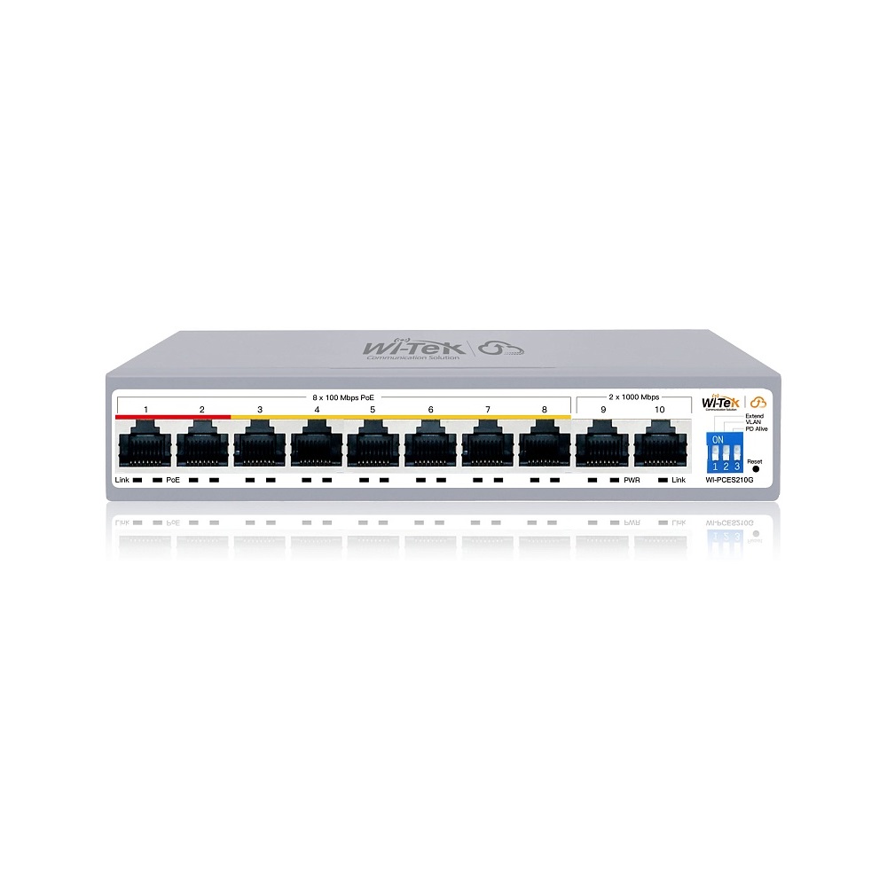 Wi-Tek WI-PCES210G - настраиваемый коммутатор серии Easy Smart с функцией PoE и бюджетом до 100 Вт предназначен для инсталляции в современных сетях IP-телефонии, IP-видеонаблюдения, Wi-Fi.