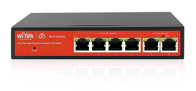 Wi-Tek WI-PCES306G - настраиваемый гигабитный коммутатор серии Easy Smart с функцией PoE с бюджетом 60 Вт, предназначенный для инсталляции в современных высокоскоростных сетях IP-телефонии, IP-видеонаблюдения, Wi-Fi.