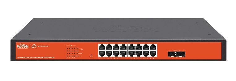 Wi-Tek WI-PCES318GF - настраиваемый гигабитный коммутатор серии Easy Smart с функцией PoE с бюджетом 250 Вт предназначен для инсталляции в современных высокоскоростных сетях IP-телефонии, IP-видеонаблюдения, Wi-Fi