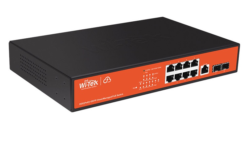 Управляемый PoE-коммутатор WI-PCMS310GF оснащен 8 GE портами и 2 портами SFP.