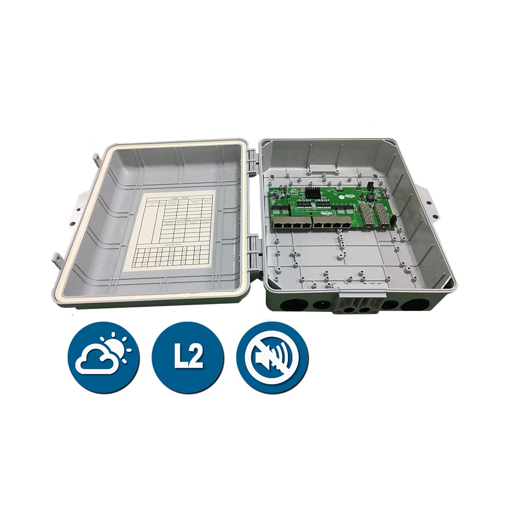 Коммутатор поставляется в пластиковом корпусе, c классом защиты IP67, предназначенном для инсталляций в подсобных помещениях.
