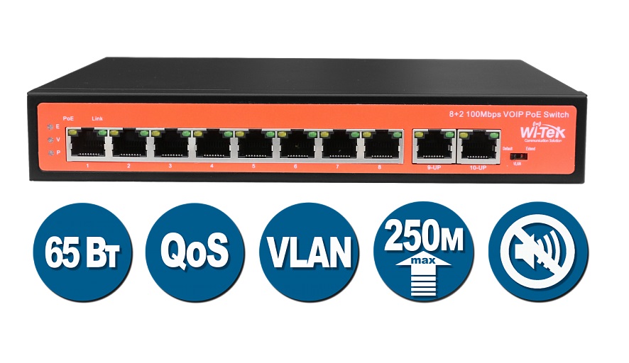 Надежный внутренний бесшумный блок питания , разработанный компанией Wi-Tek, гарантирует бесперебойную работу в течение длительного срока эксплуатации, а его внутреннее исполнение упрощает монтаж и эксплуатацию оборудования, а также экономит место при инсталляции. Номинальный бюджет позволяет подключать практически любые IP-телефоны с поддержкой PoE.