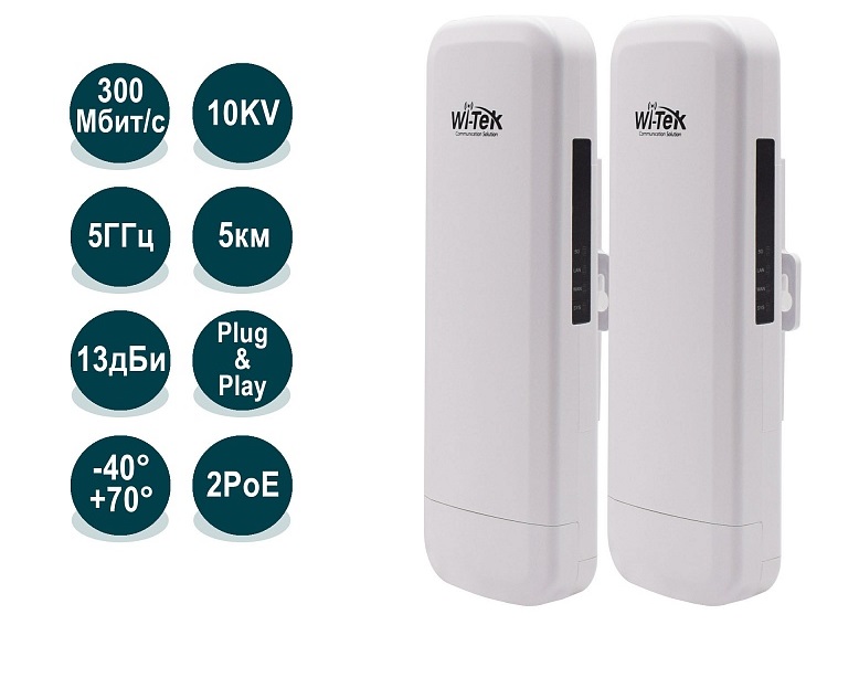 Точки доступа WI-CPE513P-KIT поставляются комплектом из двух точек доступа предварительно настроенные в режим AP и CPE.