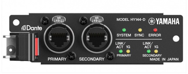 Yamaha HY144-D — это плата ввода/вывода цифрового сигнала с поддержкой протокола Dante. Позволяет одновременно задействовать до 144 входных и выходных каналов с разрешением 96 кГц/32 бит.