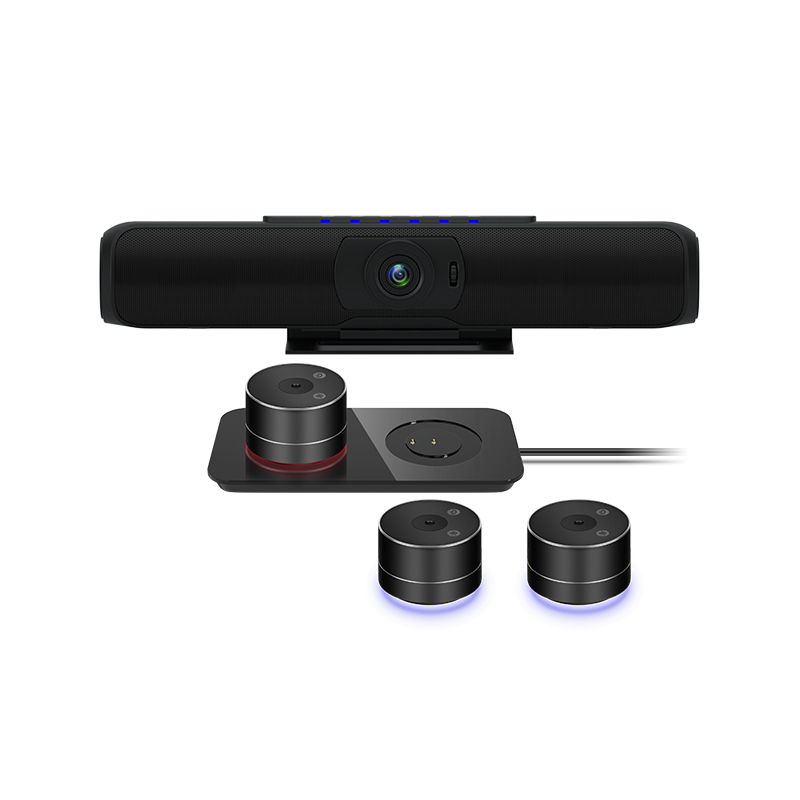 Видеобар обладает технологией полнодуплексных голосовых вызовов второго поколения. Оснащен встроенным цифровым микрофоном и массивом переносных микрофонов с радиусом захвата звука до 2м.
