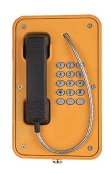 Всепогодный вандалозащищенный аналоговый телефон J&R JR103-FK-Y , полная клавиатура, без крышки, желтый. Аппарат рассчитан на долгую безотказную работу на предприятиях.
