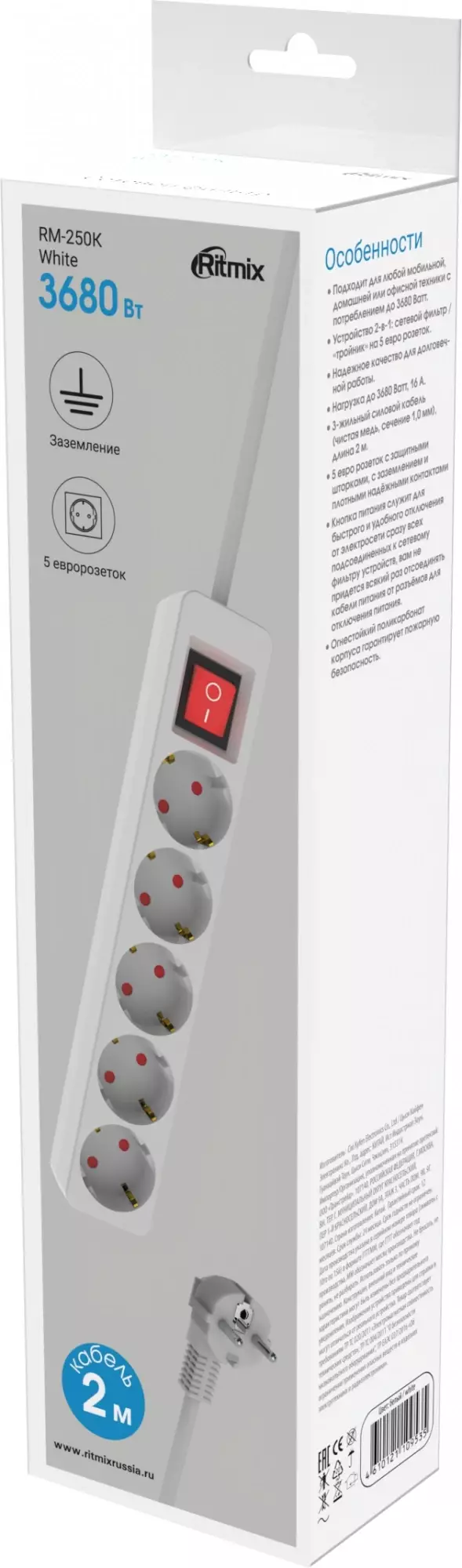 Сетевой фильтр Ritmix RM-250K 2м белый