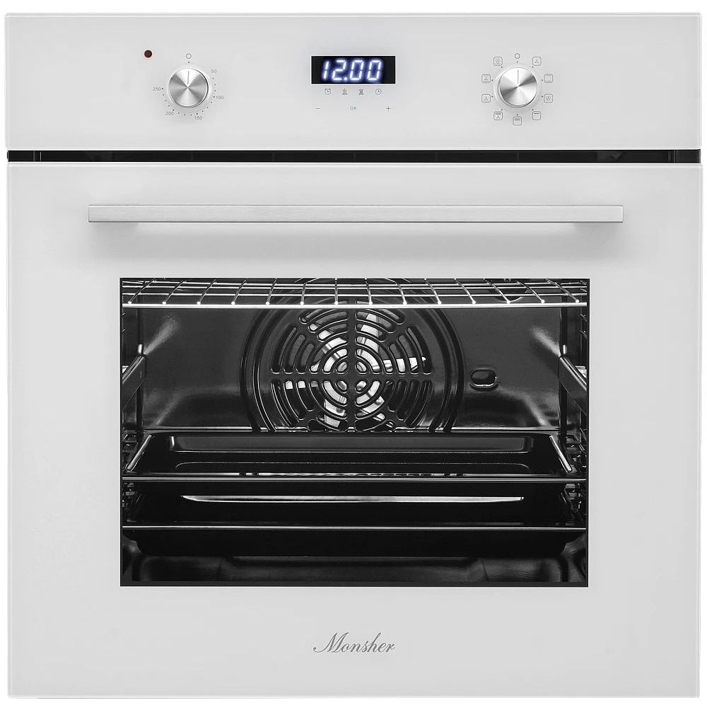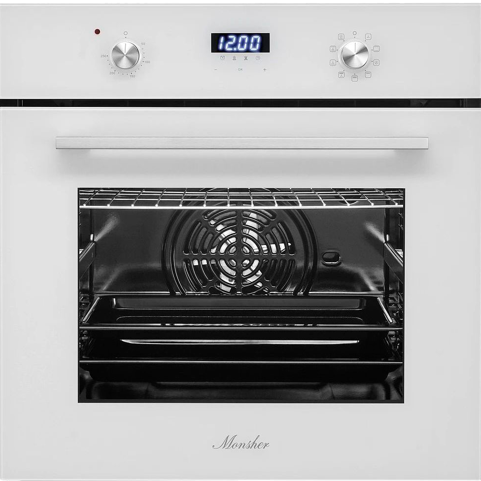 Встраиваемый духовой шкаф MONSHER/ Встраиваемый духовой шкаф MONSHER, электрический, High-Tech, 60 см, объем 72 л, 9 режимов, дисплей, таймер, телескопические направляющие на 1 уровень, цвет белый