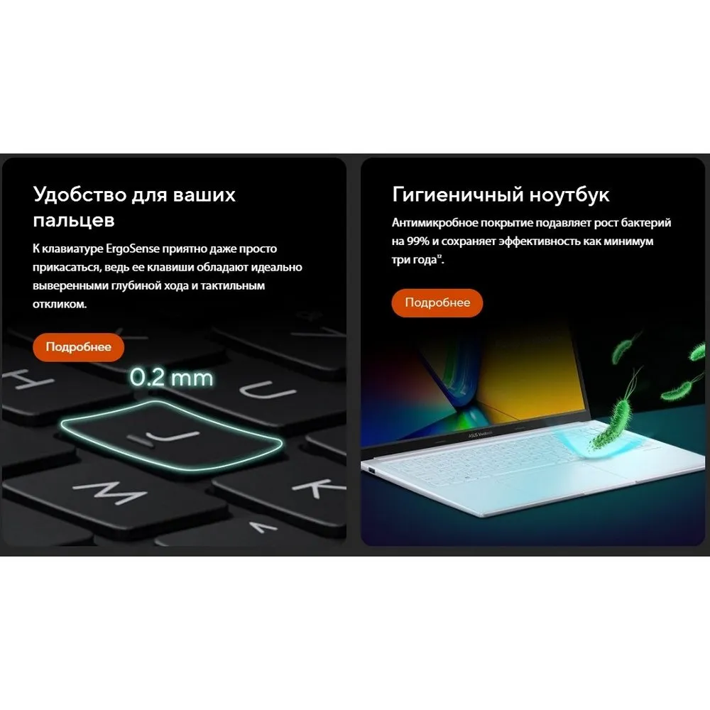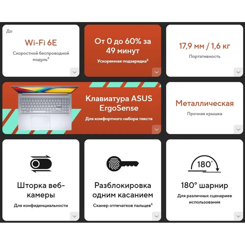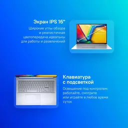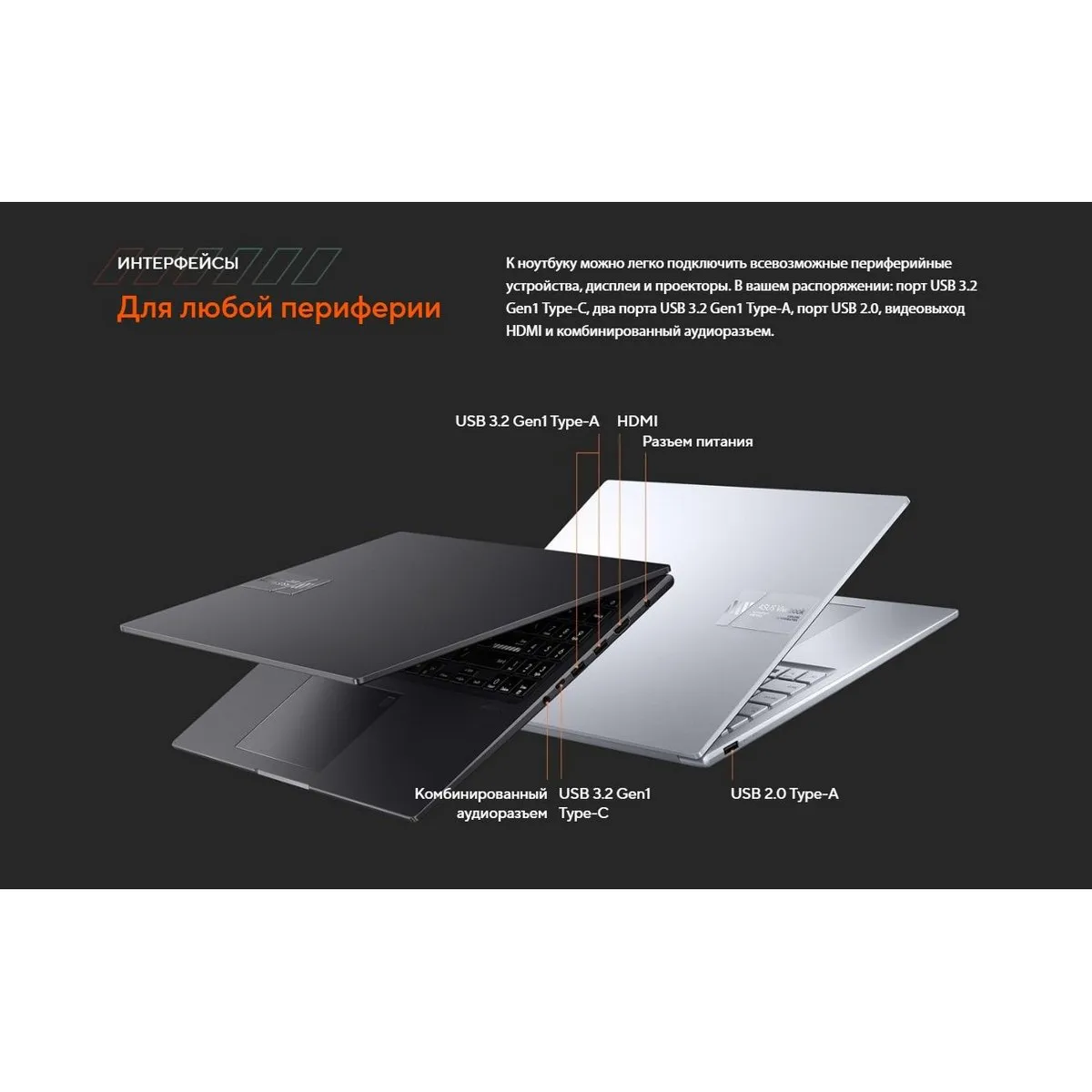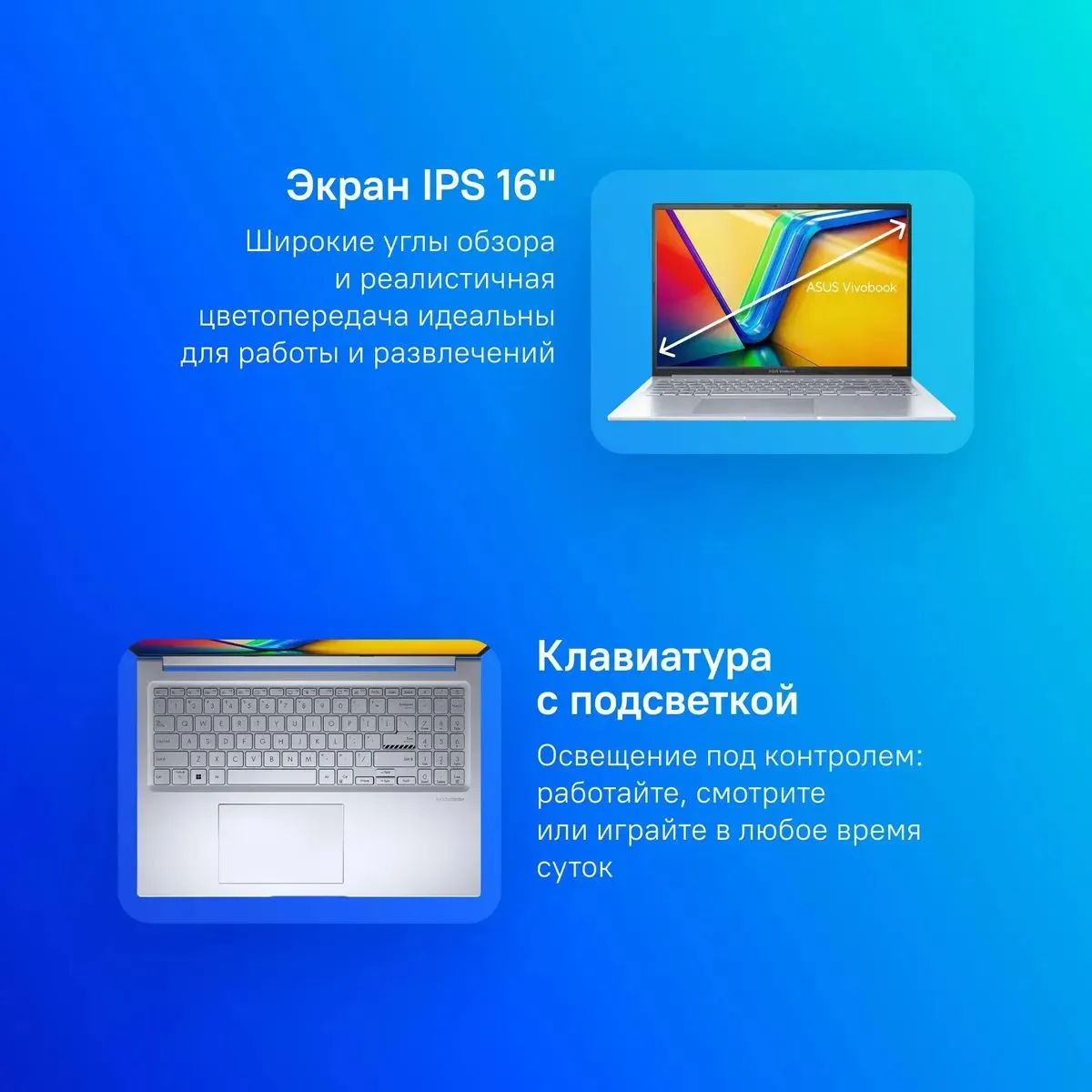 Описание товара Ноутбук Asus VivoBook 16X M3604YA-MB303 Ryzen 5 7430U 16Gb SSD512Gb AMD Radeon Graphics 16" IPS WUXGA (1920x1200) без ОС silver WiFi BT Cam (90NB11A2-M00D80)