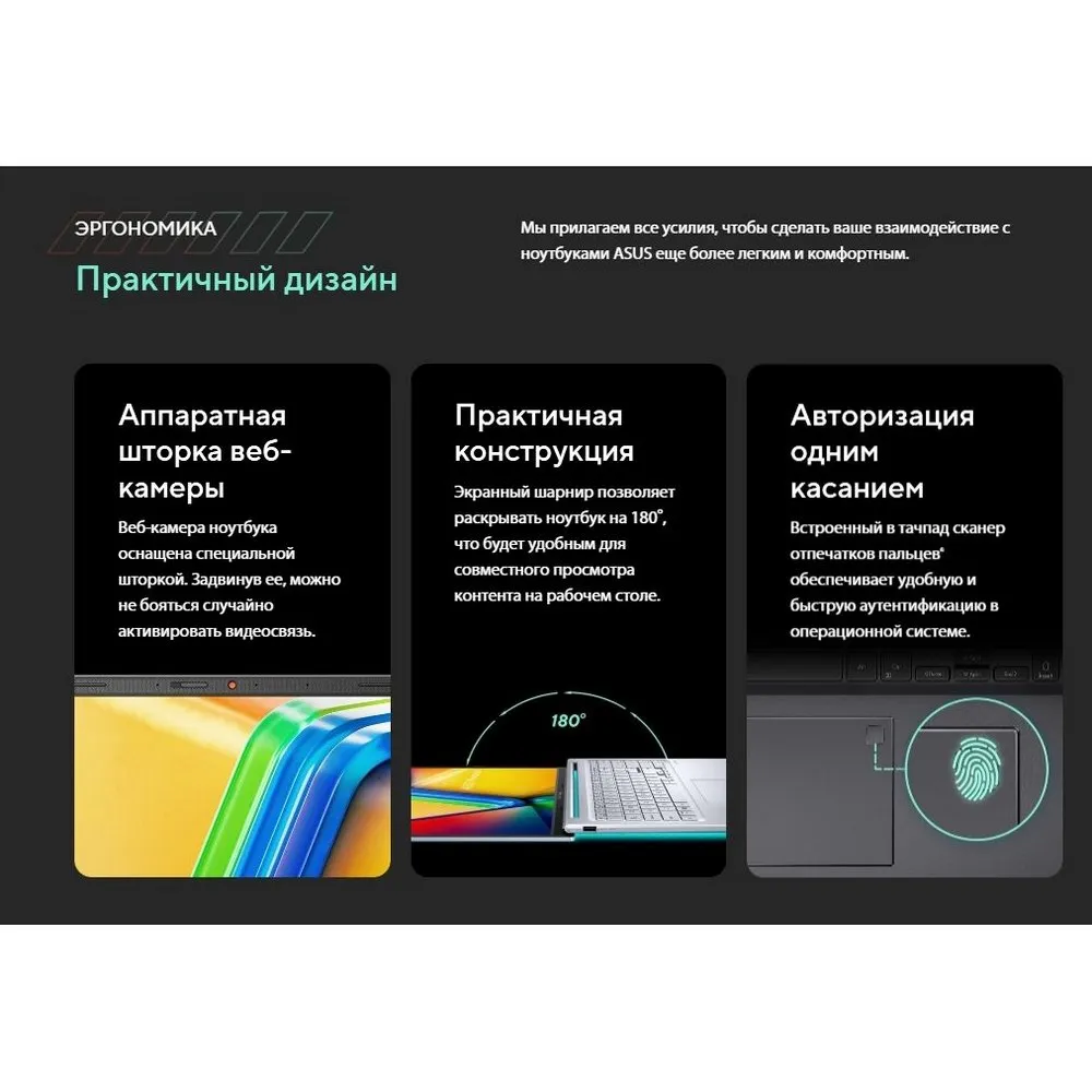 Ноутбук ASUS VivoBook 16X с 16-дюймовым IPS-экраном и 6-ядерным процессором AMD Ryzen 5. Лёгкий корпус из алюминия и пластика сочетает мобильность с производительностью, что делает его отличный для работы и учёбы. Матовая матрица с широкими углами обзора уменьшает блики и снижает нагрузку на глаза.