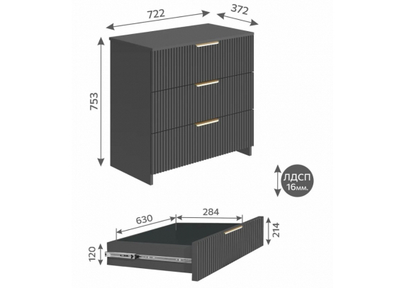 Элегантный дизайн: Графитовый цвет и современные линии делают этот комод стильным акцентом в любом помещении.