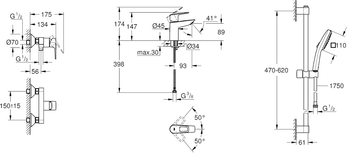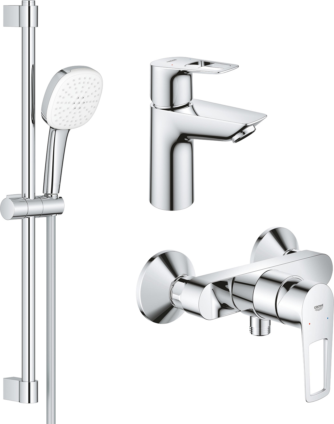 • Комплектация смеситель для умывальника / Grohe BauLoop 23337001 /смеситель для душа / Grohe BauLoop 32816000 /душевой гарнитур / Grohe Tempesta Cube 110 26748003 /стойка