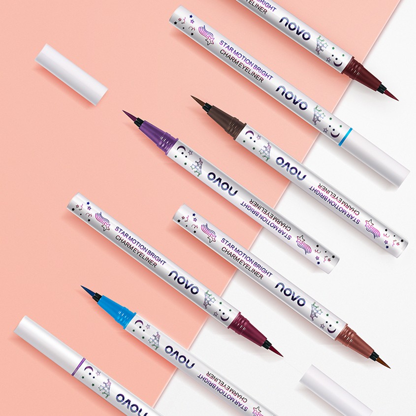 Экспериментируйте с макияжем глаз, играйте с цветом и создавайте смелые образы! Водостойкая подводка NOVO позволяет рисовать яркие и насыщенные, но при этом аккуратные и стойкие стрелки.
