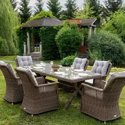 Обеденный комплект Victor Royal Family из искусственного ротанга c 6 креслами, цвет коричневый