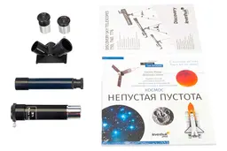 Телескоп Discovery Sky T50 – это рефрактор, с которым очень легко осваивать основы астрономии. Он не требует специальной настройки, прост в управлении и комплектуется всем необходимым для наблюдений – в том числе познавательной книгой «Космос. Непустая пустота». Лучше всего телескоп подходит для рассматривания Луны и наземных объектов, также в него можно увидеть многие объекты ближнего космоса, правда, без детализации. Телескоп упакован в красочную брендированную коробку, поэтому его можно выбирать для подарка. Возможности телескопа раскрываются по максимуму прямо «из коробки». Благодаря двум разнофокусным окулярам и линзе Барлоу можно легко «разогнать» оптику до максимально полезного увеличения, диагональное зеркало повышает комфорт наземных наблюдений, а оптический искатель помогает точно наводить трубу телескопа на интересующие вас объекты. Азимутальная монтировка дополнена удобной крупной ручкой наведения, при помощи которой трубу телескопа можно поворачивать вправо, влево, вверх и вниз. Тренога выполнена из алюминия, высоту каждой ножки можно регулировать по отдельности, что позволяет устойчиво размещать телескоп практически на любой поверхности. Книга знаний «Космос. Непустая пустота» – приятный и полезный бонус к телескопу. Она написана живым языком, дополнена яркими иллюстрациями и рассказывает о множестве астрономических объектов: Солнце, планетах и их спутниках, метеорах и кометах, далеких звездах и многом другом. Книга научит ориентироваться на звездном небе и познакомит с устройством телескопа и основами астрономических наблюдений.