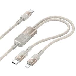 Дата-кабель Hoco U139 2 в 1 Type-C/Type-C +Lightning (100W, нейлон 1,2м.) цвет: золото to Lightning supports