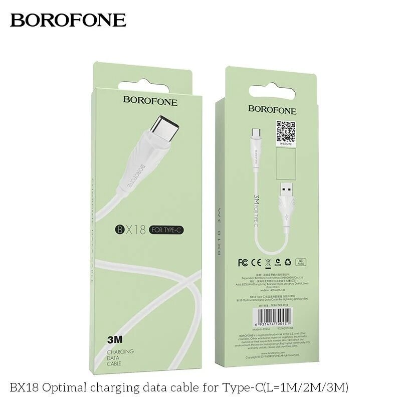 Дата-кабель BOROFONE BX18 Type-C (3м., 1,6A), цвет: белый