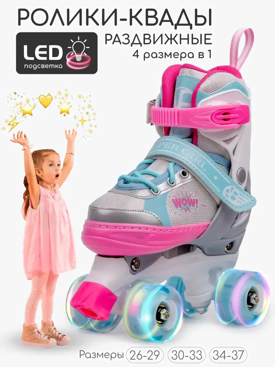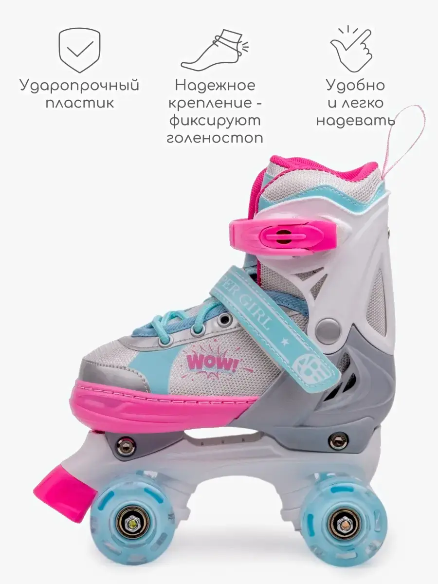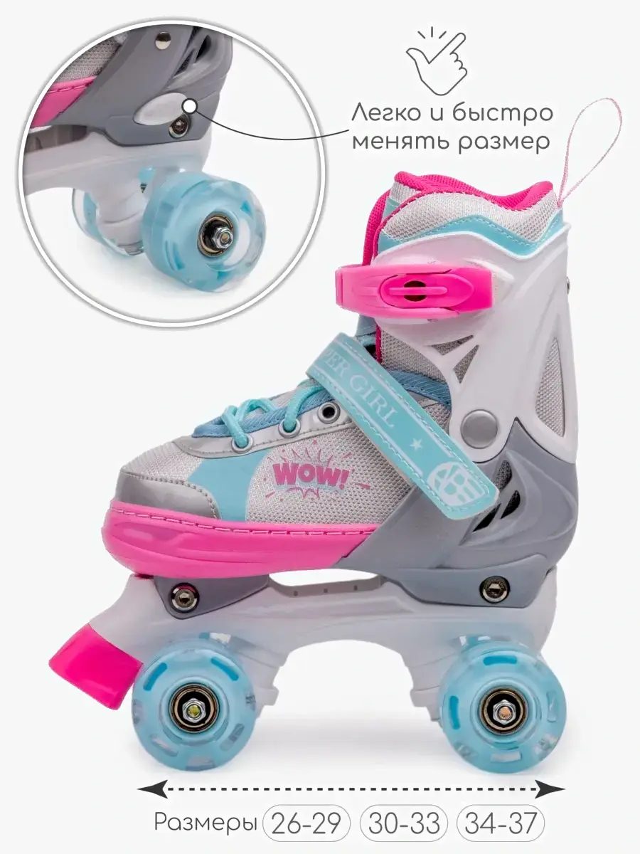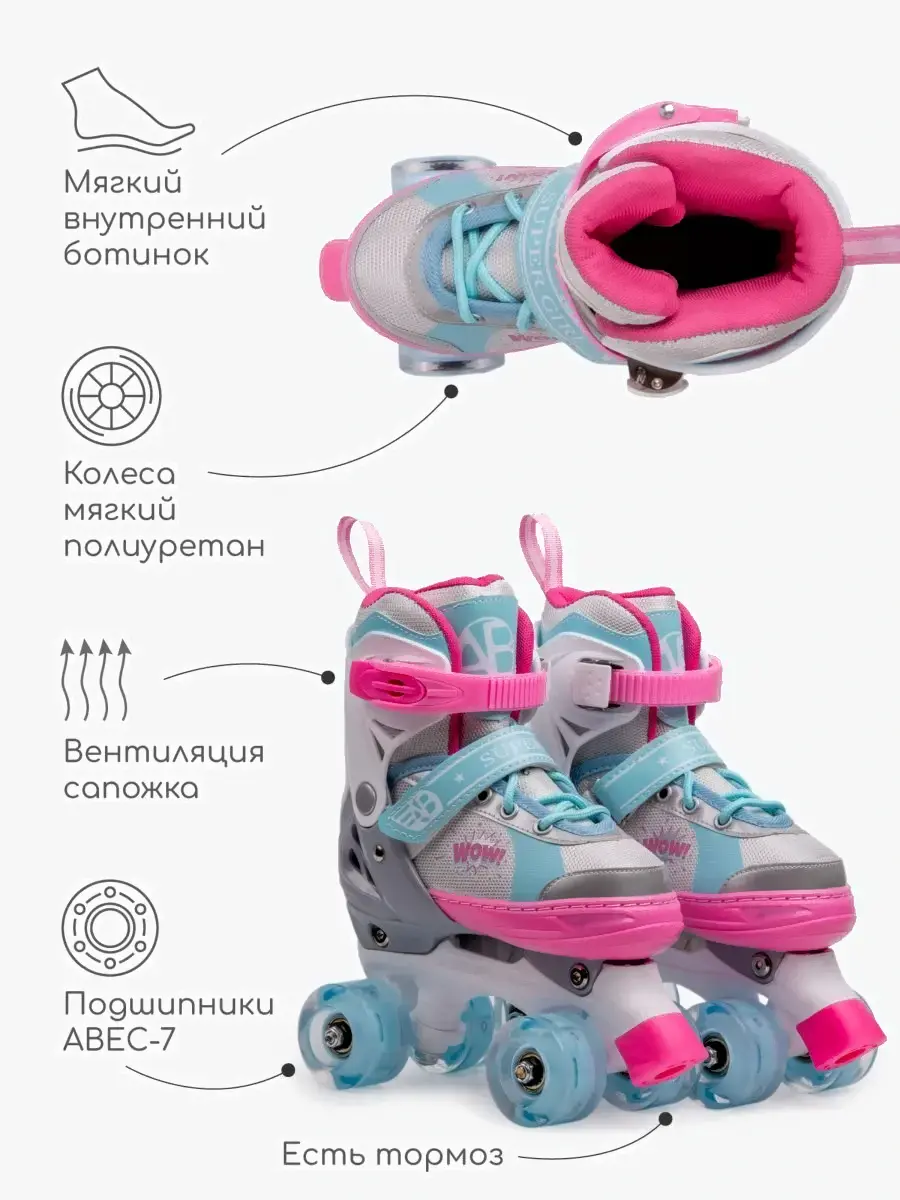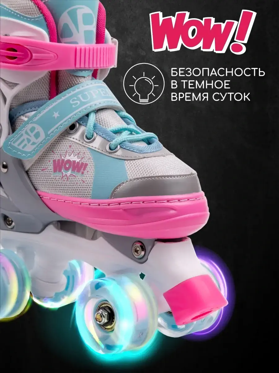 Роликовые коньки Amarobaby Wow / AB24-35WOW/1906-34 (р.34-37, розовый/голубой)
