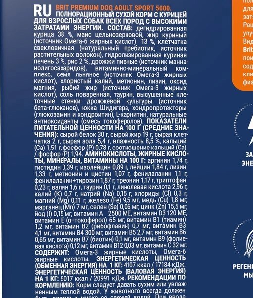 Сухой корм для собак Brit Premium Dog Adult Sport 5000 с курицей / 5092925