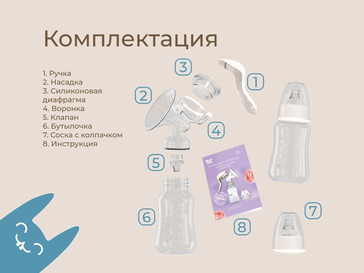 • В комплекте бутылочка (с соединительным кольцом), контейнер для молока (5 пакетов для хранения и заморозки грудного молока), соска, крышка