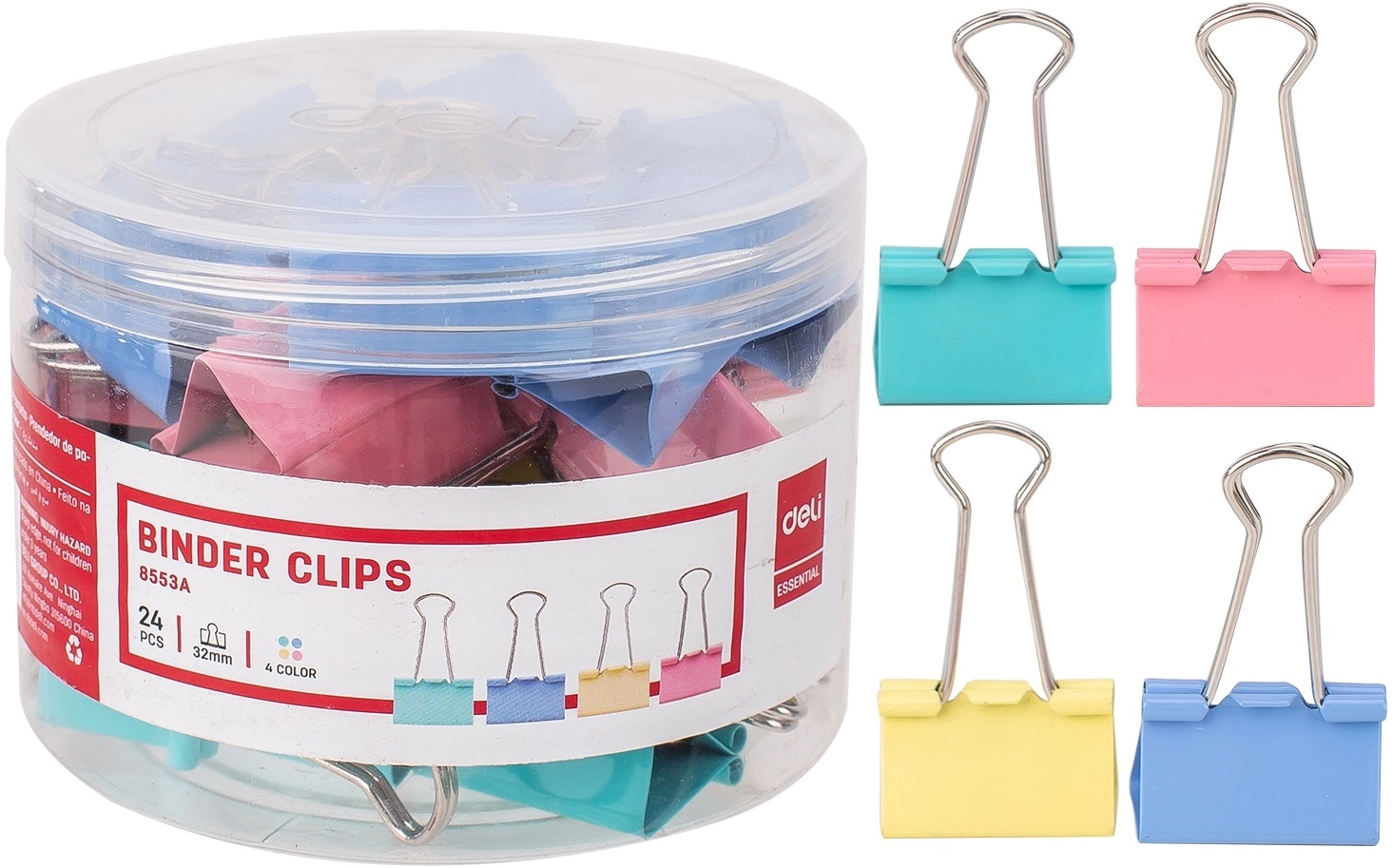 Зажимы Deli E8553A металл 32мм ассорти (упак.:24шт) пластиковая коробка