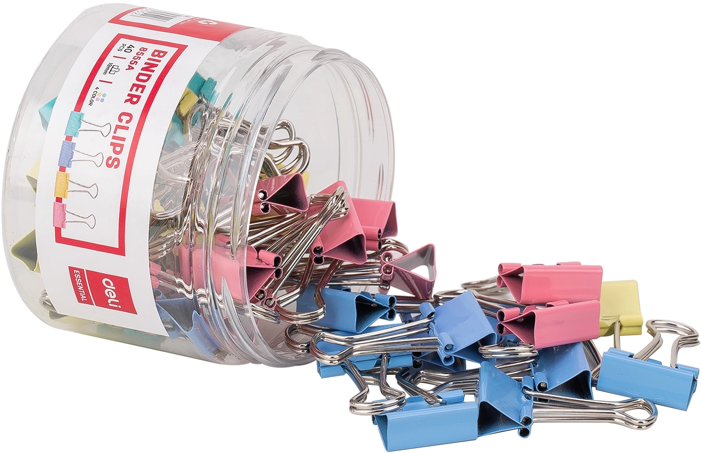 Зажимы Deli E8555A металл 19мм ассорти (упак.:40шт) пластиковая коробка