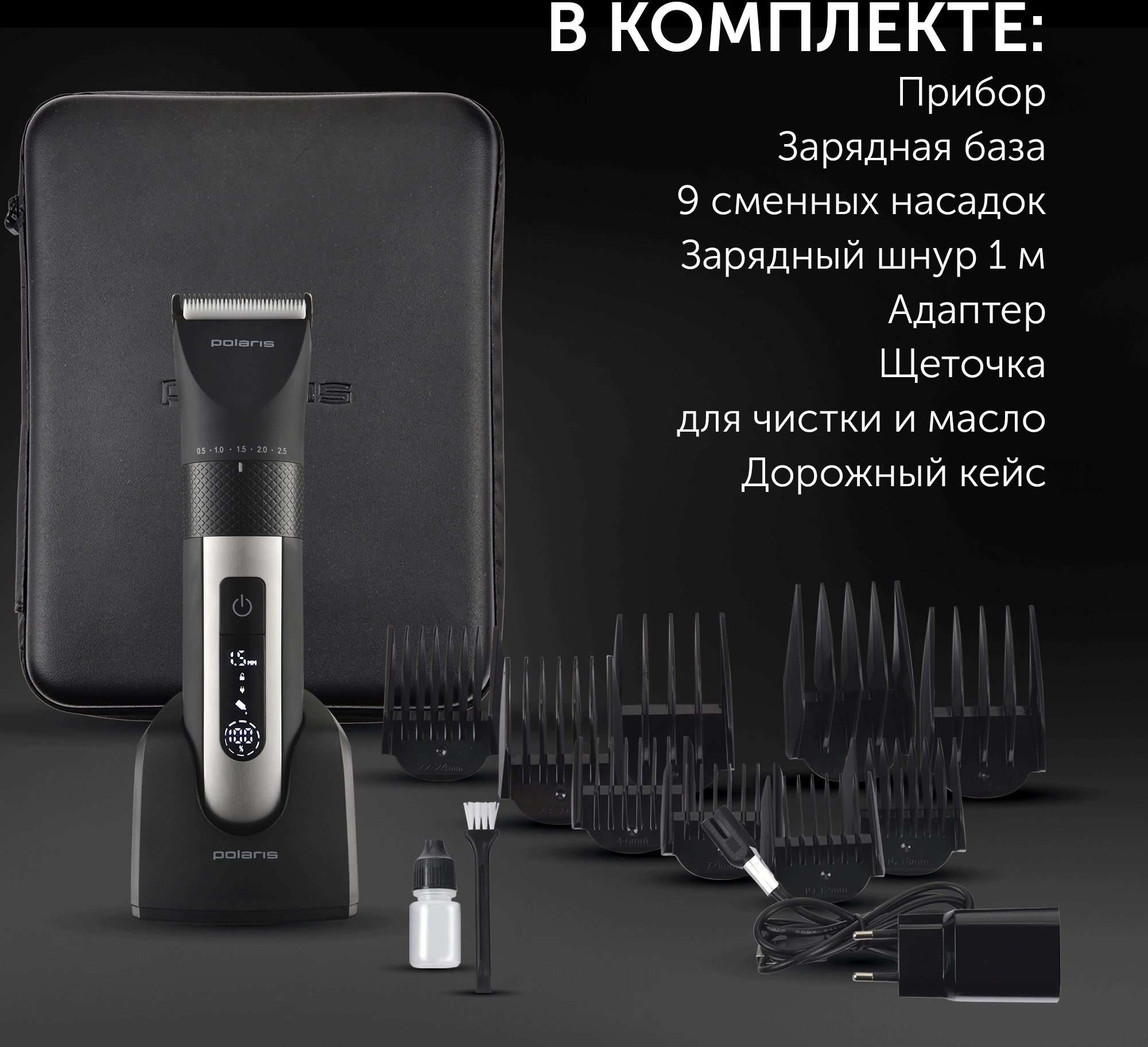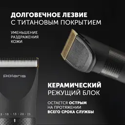 Машинка для стрижки Polaris PHC 5200 черный 5Вт (насадок в компл:9шт)