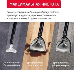 Аксессуары в комплектенасадка для влажной уборки ковров/полов, насадка для влажной уборки мягкой мебели, насадка для мытья окон, насадка для мягкой мебели, насадка для пола и ковров, турбощетка, щелевая насадка