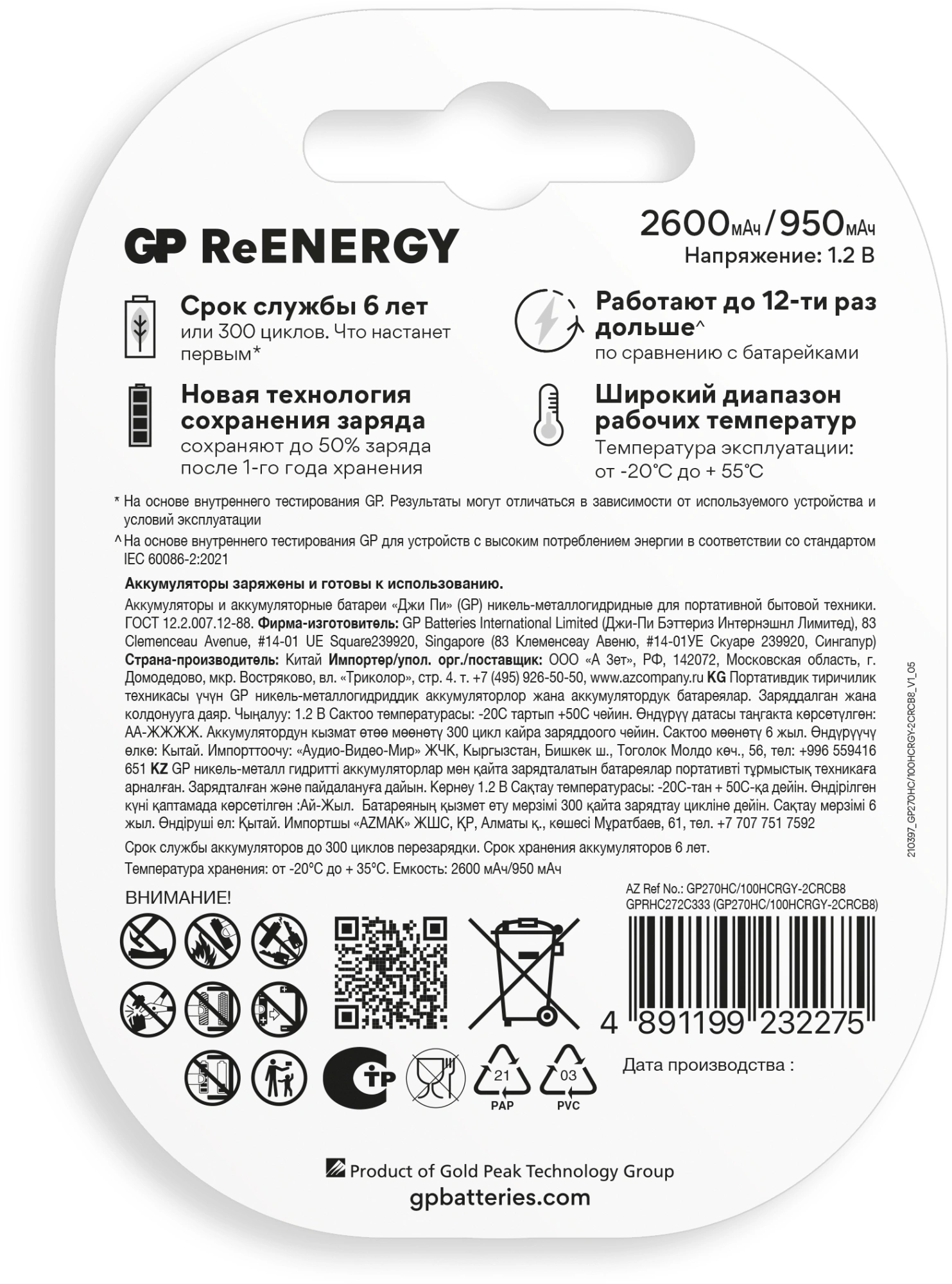 Аккумулятор GP 270AAHC АА+100AAAHC AAA NiMH 2650mAh (4шт)