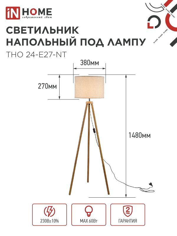 Торшер INhome ТНО 24-Е27-NT 230В / 4690612059594
