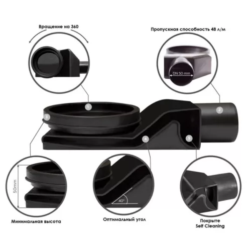 Душевой трап Pestan Confluo Primo Compact Line 2 в 1 450 / 550 / 650 / 750 / 850 Black Matte c двусторонней решеткой-перевертышем из нержавеющей стали. С одной стороны решетка черного матового цвета, с другой стороны - полая, под плитку. Душевой трап предназначен для использования как в ванных комнатах, так и в супермаркетах, ресторанах, застекленных балконах и др. Сифон в комплекте.
