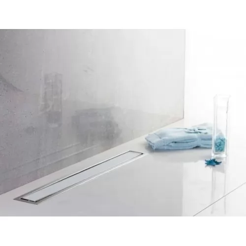 Душевой трап Pestan Confluo Premium Line White Glass 2 в 1. Уникальный душевой трап с возможностью выбора дизайна решетки: двустороний вариант. Первый вариант - цвет матовый хром, второй вариант - глянцевое белое закаленное стекло. Ширина 120 мм, ширина решетки 55 мм.