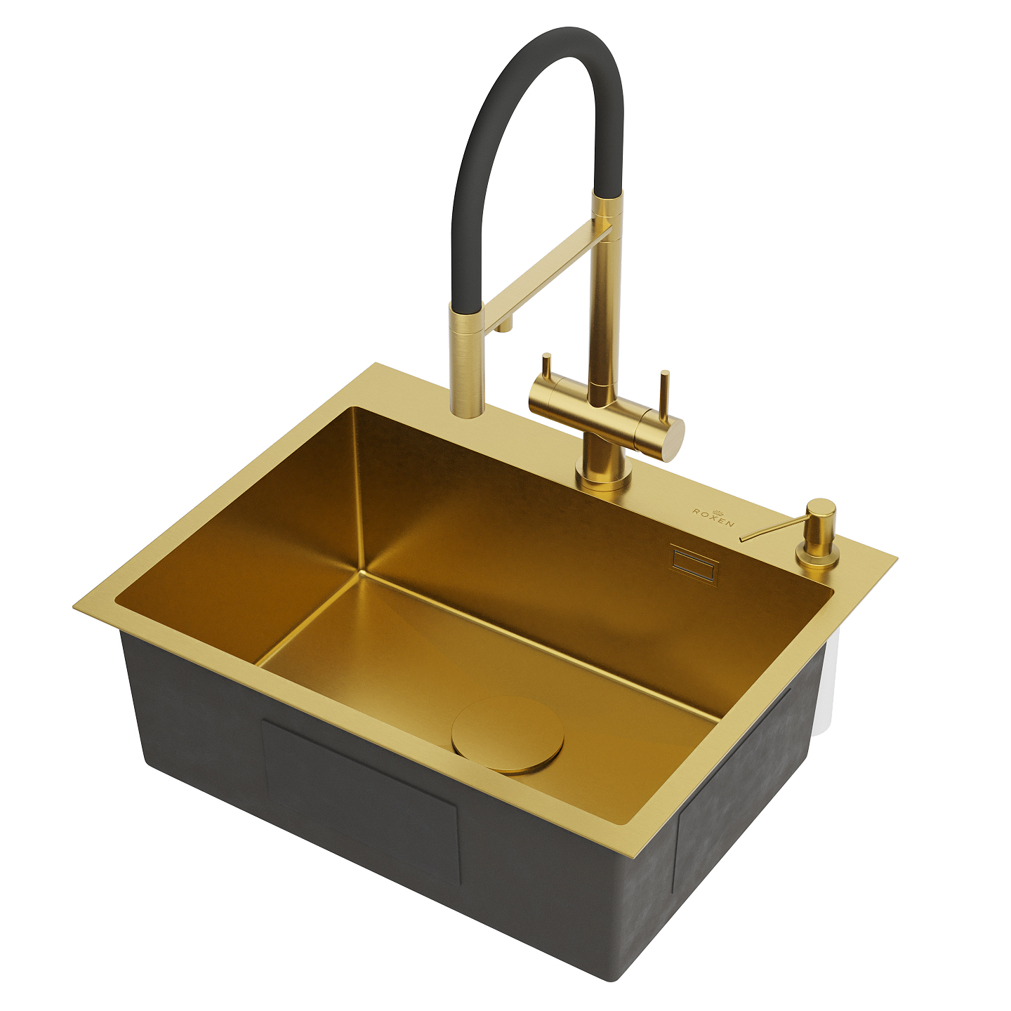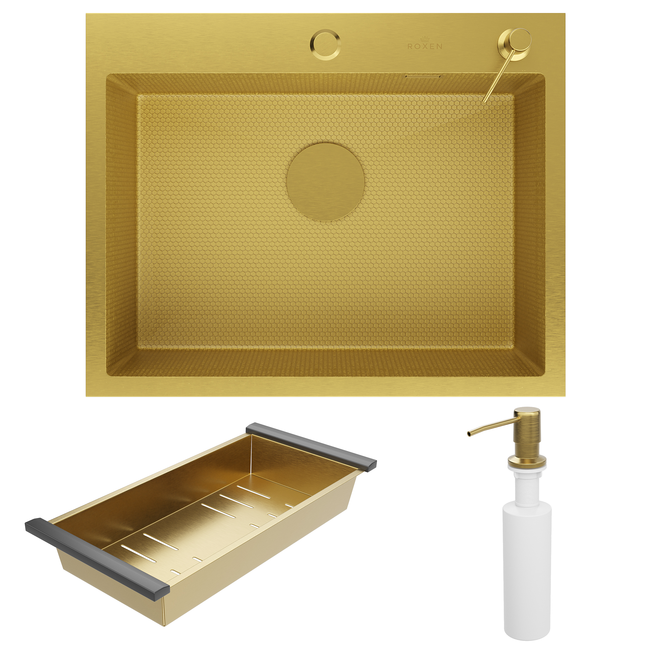 Мойка кухонная Roxen Simple 560220-60G PVD c коландером и дозатором (золото)
