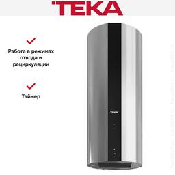 Teka CC 480 — трехскоросная вытяжка в форме трубы, предназначенная для потолочного монтажа. Модель снабжена сенсорной панелью управления, при помощи которой можно с легкостью отрегулировать интенсивность всасывания или же активировать функцию таймера. Дополнительное удобство в процессе приготовления пищи обеспечивается наличием встроенной подсветки, яркой и экономичной.