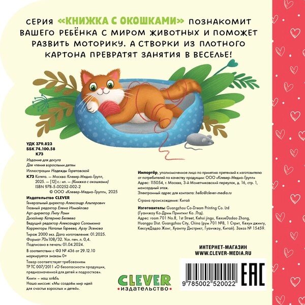 Развивающая книга CLEVER Книжка с окошками. Котята, твердая обложка