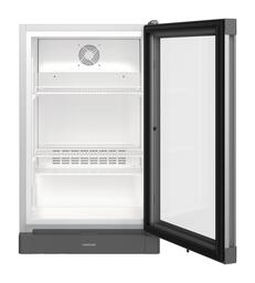 Прозрачная дверца обеспечивает хороший обзор содержимого, а регулируемые полки позволяют удобно организовать внутреннее пространство. Серебристая отделка корпуса придаёт устройству современный и аккуратный вид.