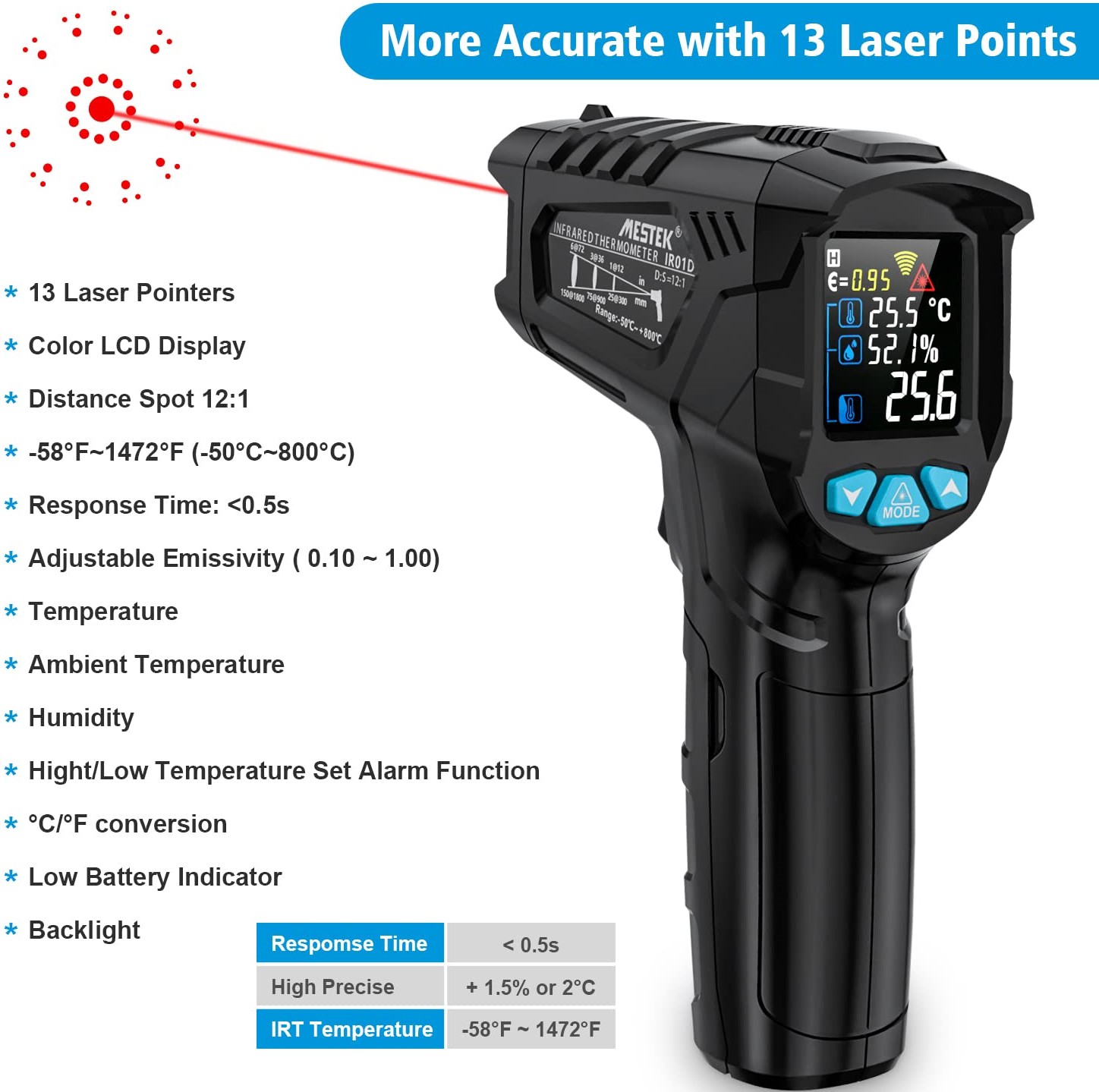 • Функции регулировка коэффициента излучения