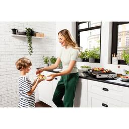 ОсобливостіЗнімний піддон для збирання крапель; Змінні пластини; Захист від перегрівання; Протиковзна основа; Ручка CoolTouch; Світлові індикатори; Функція настільного гриля; Регулювання нахилу; Контроль температури; Регулювання таймера; Тарілки можна мити в посудом